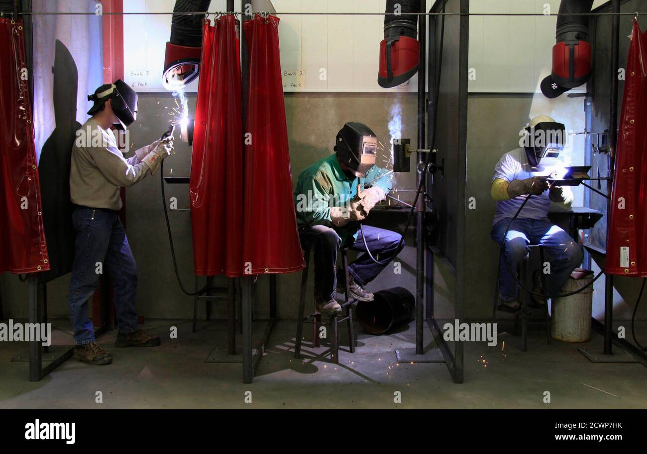 First Year Ironworker Apprentices L R Ian Welshhans Daniel Truax And Jason Taylor Practice Their Welding Skills During A Class At The Ironworkers Local 549 Training Facility In Wheeling West Virginia March 6